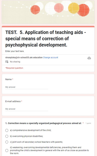 Fig.2. Google Form for test teachers who work with students involved in inclusive education
