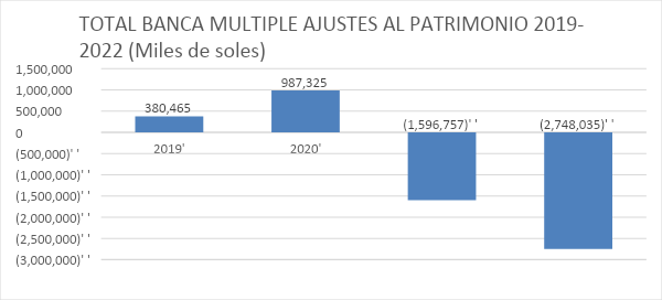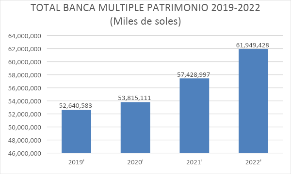 De acuerdo a lo establecido en el procedimiento, se inicia con la revisión, análisis y validación de los EEFF del sistema bancario. Se ha procedido a extraer la información del patrimonio a nivel del total de la banca múltiple en miles de soles tal como de muestra en la TABLA N°1, que consolida información desde el año 2019, que si bien no forma parte del período de investigación si es relevante para fines de tener un período referencial prepandemia. Se analiza y valida la información evaluando su consistencia.